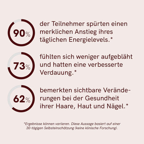 Jede Portion enthält eine durchdachte Kombination aus Antioxidantien, Probiotika und bioaktiven Verbindungen. Diese Inhaltsstoffe tragen zur Stärkung der Immunabwehr und zur Verbesserung der Darmfunktion bei*. Diese wirkungsvolle Nährstoffmischung hilft dabei, den altersbedingten Herausforderungen mit innerer Stärke zu begegnen.