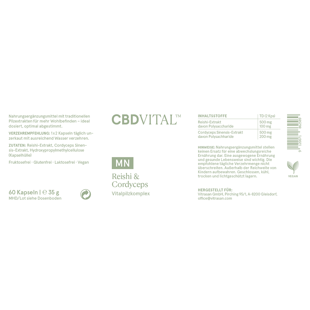 Vitalpilze gehören wie Pflanzenextrakte und Mikronährstoffe in das komplementäre Repertoire für ein verbessertes Wohlbefinden. Den traditionell chinesischen Vitalpilzen werden eine Vielzahl von positiven Gesundheitseigenschaften zugesprochen, weswegen sie sehr vielseitig eingesetzt werden. Der Vitalpilzkomplex von CBD VITAL enthält rein konzentrierte Pilzextrakte und ist daher besonders effektiv.