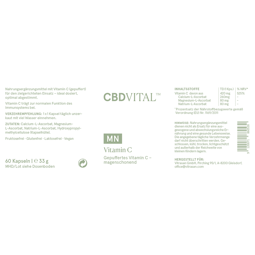 Vitamin C gepuffert ist durch den beinahe neutralen pH-Wert die magenschonende Form von Vitamin C und eignet sich insbesondere für die Supplementierung bei sensiblen Personen. Die Zufuhr von Vitamin C als Mineralascorbat erhöht die Bioverfügbarkeit und sorgt für eine besonders gute Verträglichkeit.