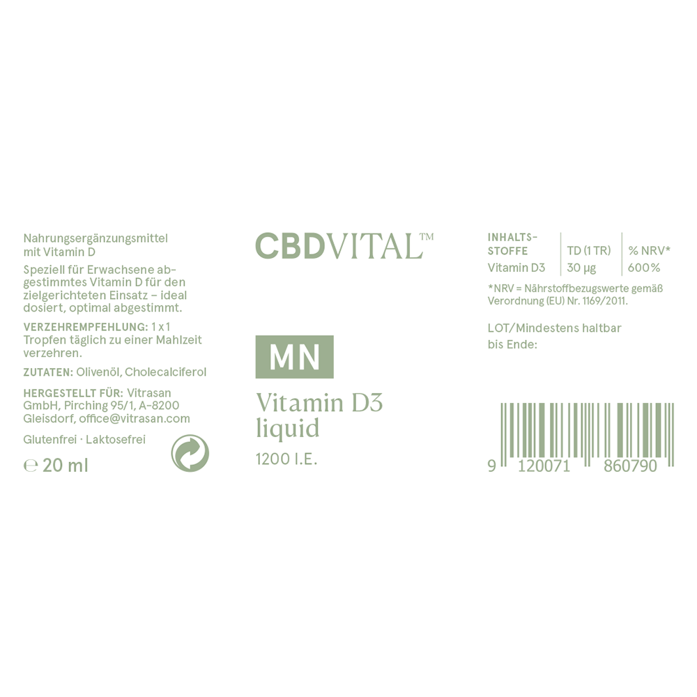 • Enthält 1200 I.E. (30 μg Vitamin D3) pro Tropfen